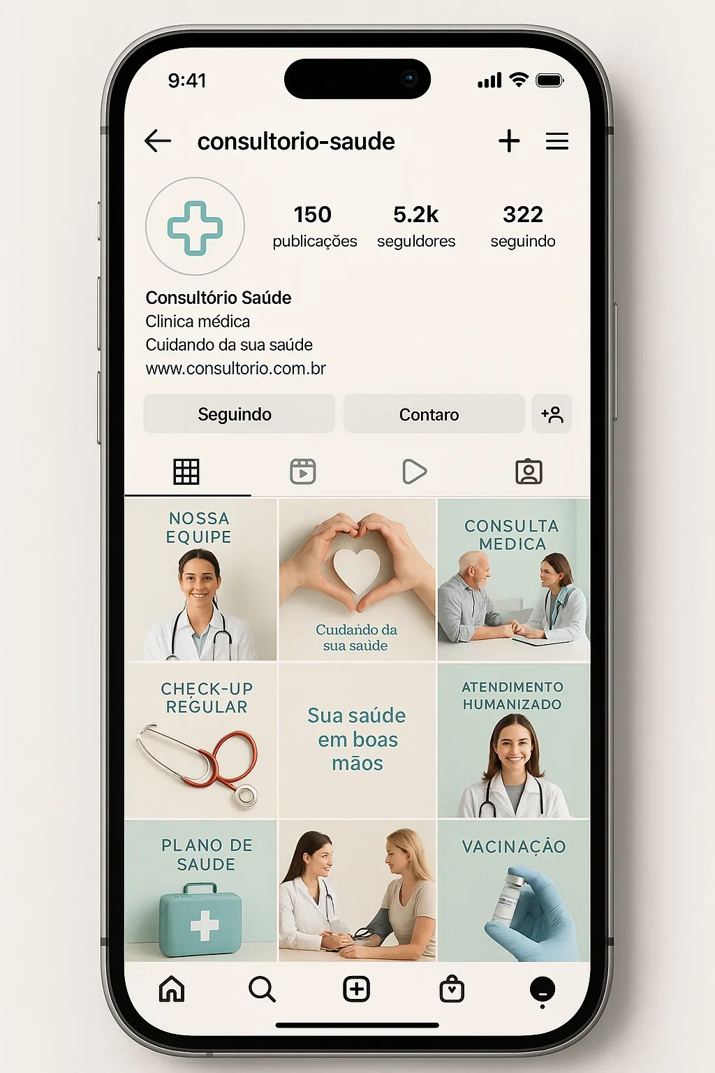 20 publicações/mês (feed, reels e stories) →publicações estratégicas para atrair pacientes e consolidar autoridade.